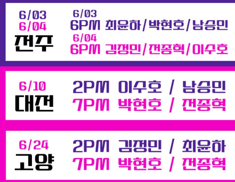 | 전 주 | 2023년 06월 03일 (토요일) ~ 2023년 06월 04일 (일요일) |