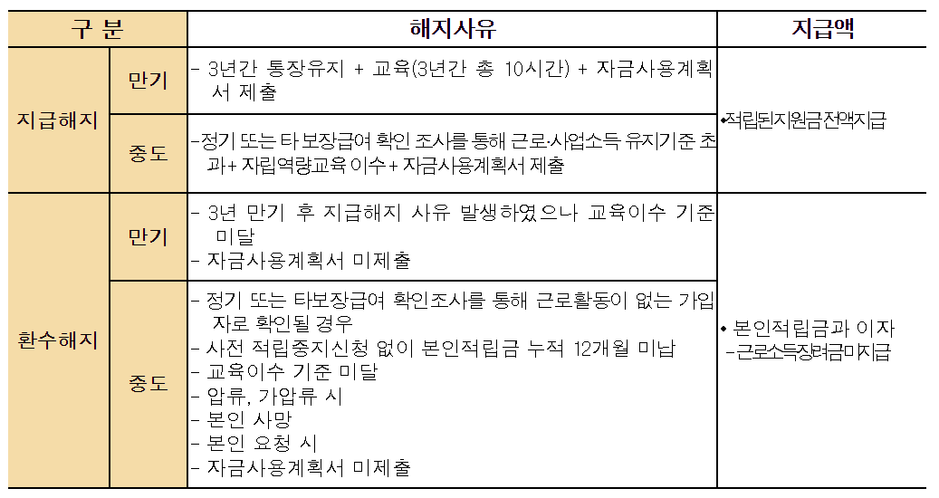 - 탈수급장려금 : 가입 시 생계'의료 수급 가구(청년)가 탈수급한 경우 지원 (23년 가입자 72만원)