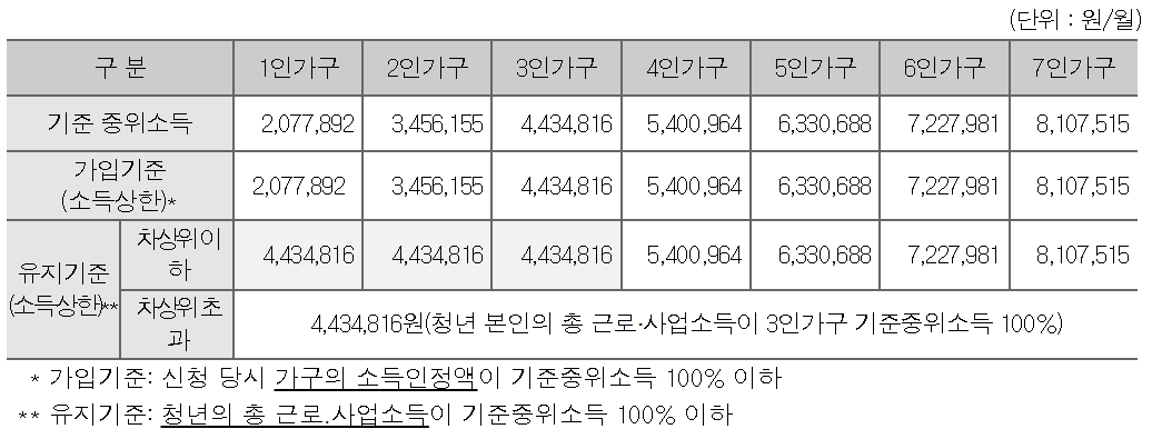 * (기준 중위소득 50% 이하) 만 15세 이상 ~ 만 39세 이하